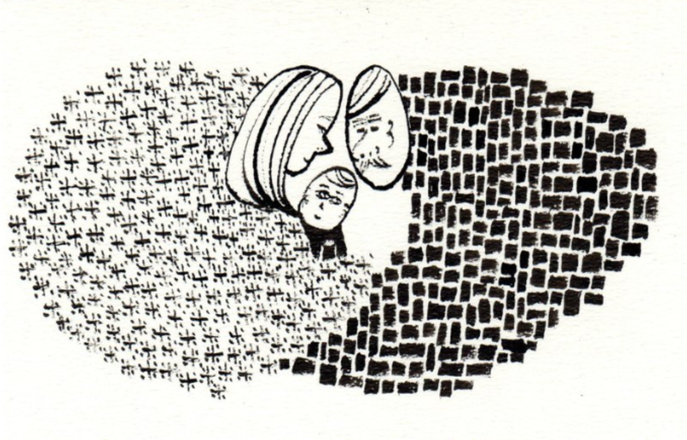 画材:竹ペン、墨